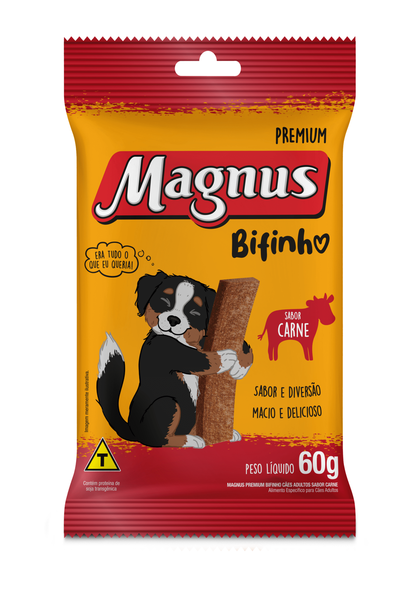 Alimento específico indicado para cães adultos. Aproveite os momentos de diversão e alegria com o seu melhor amigo. Ofereça para ele Magnus Bifinho.